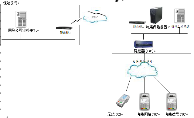 在本方案中,放置在保險(xiǎn)公司的POS具備與銀行及保險(xiǎn)公司同時(shí)進(jìn)行數(shù)據(jù)交互的能力,在進(jìn)行保險(xiǎn)收費(fèi)時(shí),先在POS上進(jìn)行保單查詢,查詢成功后進(jìn)行銀行卡支付,銀行卡支付完成后,POS將會(huì)通知保險(xiǎn)系統(tǒng)保單支付成功,保險(xiǎn)終端將會(huì)生成保單,完成交易。